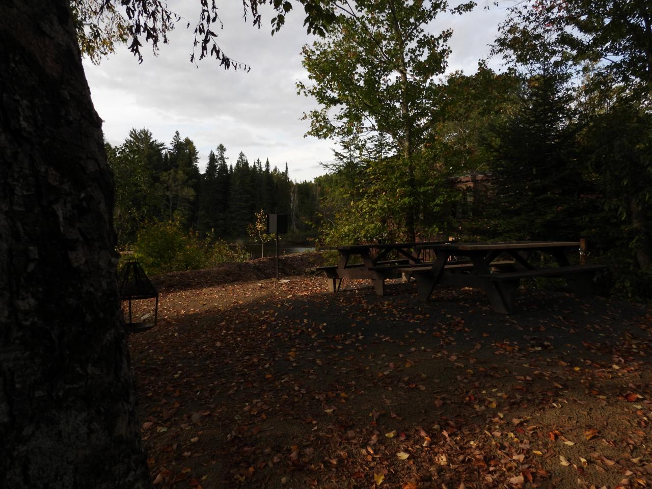 Espace de pique-nique situé directement en face de la rivière Ouareau.
