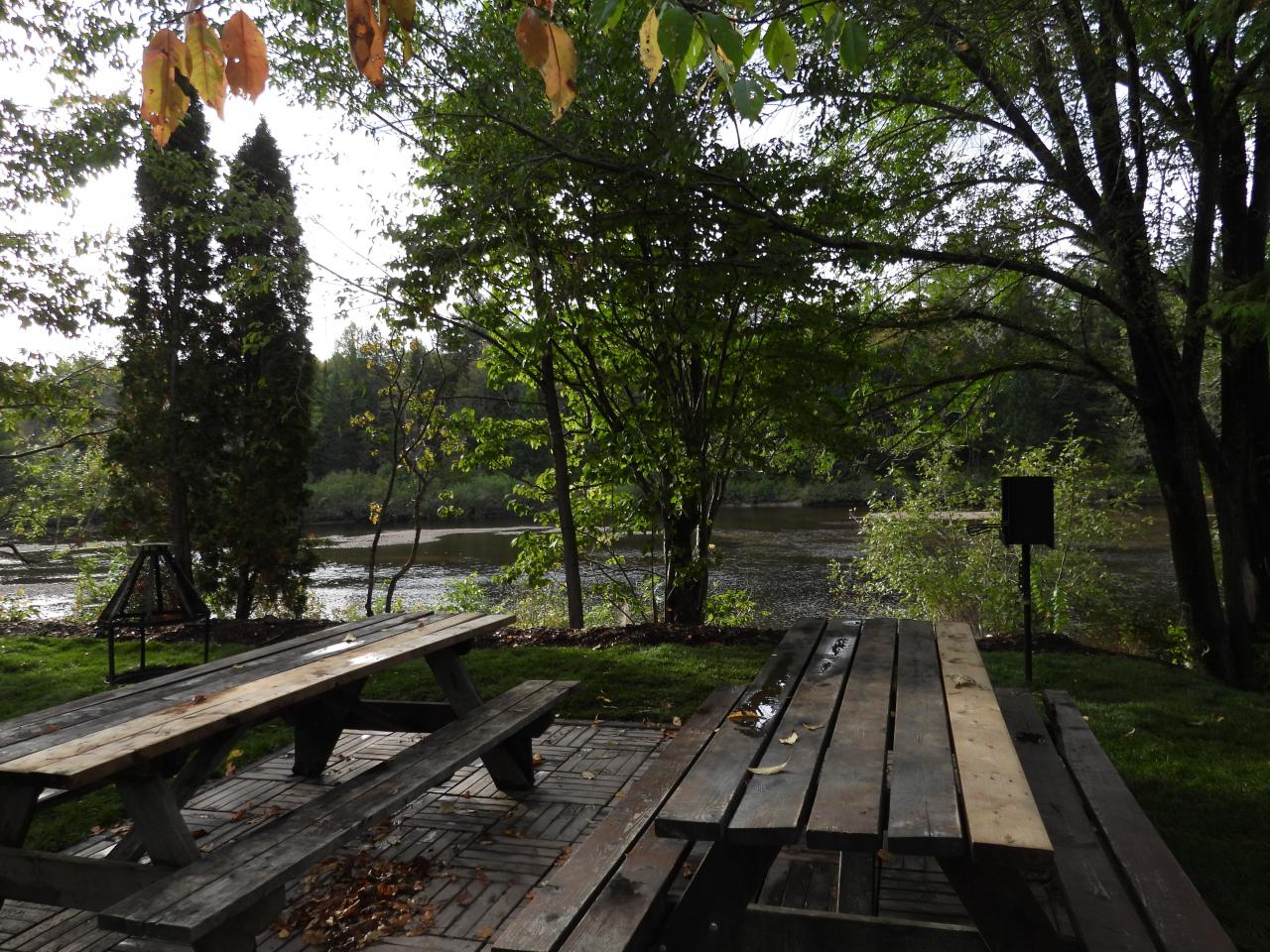 Espace de pique-nique situé directement en face de la rivière Ouareau.